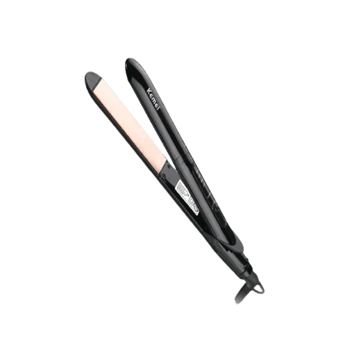 Piastra per capelli Kemei con piastre in ceramica e tecnologia al tormalina, che protegge i capelli dai danni del calore e dall’effetto crespo, offrendo un risultato liscio e brillante.