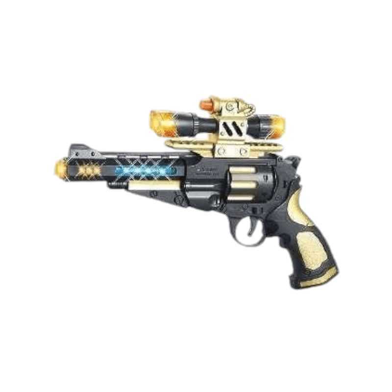 Pistola elettronica per bambini con suono e illuminazione LED multicolore. Design realistico e dettagli impressionanti per un gioco d’azione senza fine!