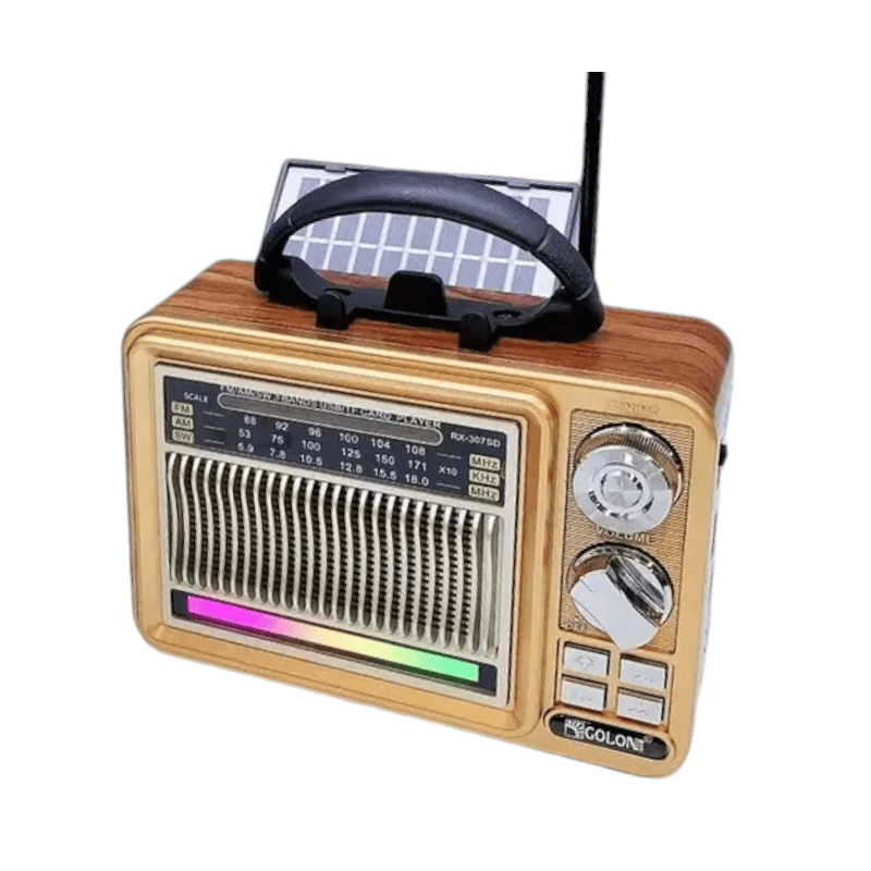 Radio portatile dal bellissimo design Retro per gli amanti dello stile Vintage. Offre alta qualità del suono grazie agli altoparlanti stereo mentre l’antenna pieghevole fornisce un segnale radio stabile.