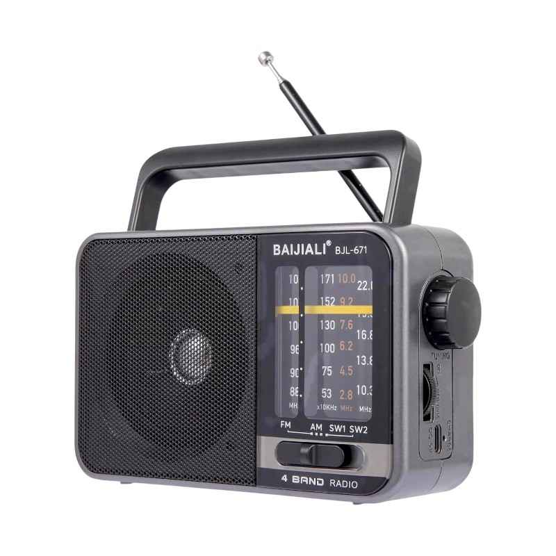 Radio portatile ricaricabile con suono chiaro e potente, in un design pratico ideale per un facile trasporto ovunque.
