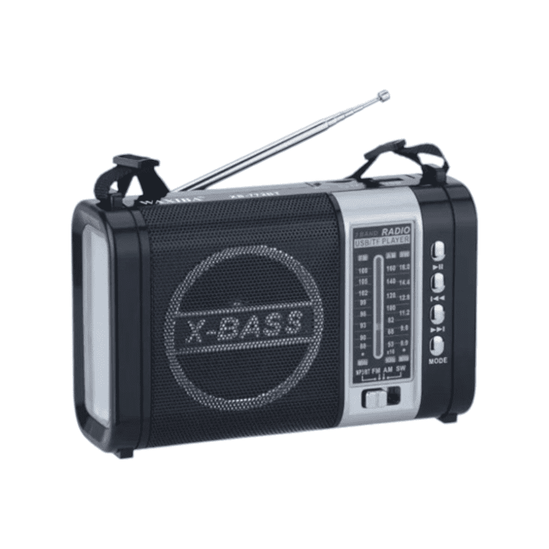 Radio ricaricabile con torcia LED laterale e suono di alta qualità, in dimensioni pratiche per un facile trasporto ovunque.