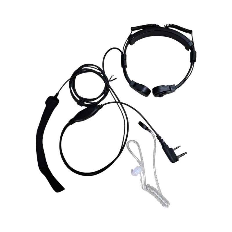 Cuffia neckband estensibile per ricetrasmittenti con spina doppia pin (3,5mm+2,5mm, distanza 11mm), microfono integrato con riduzione del rumore, cavo da 90cm e 1 tasto di attivazione.