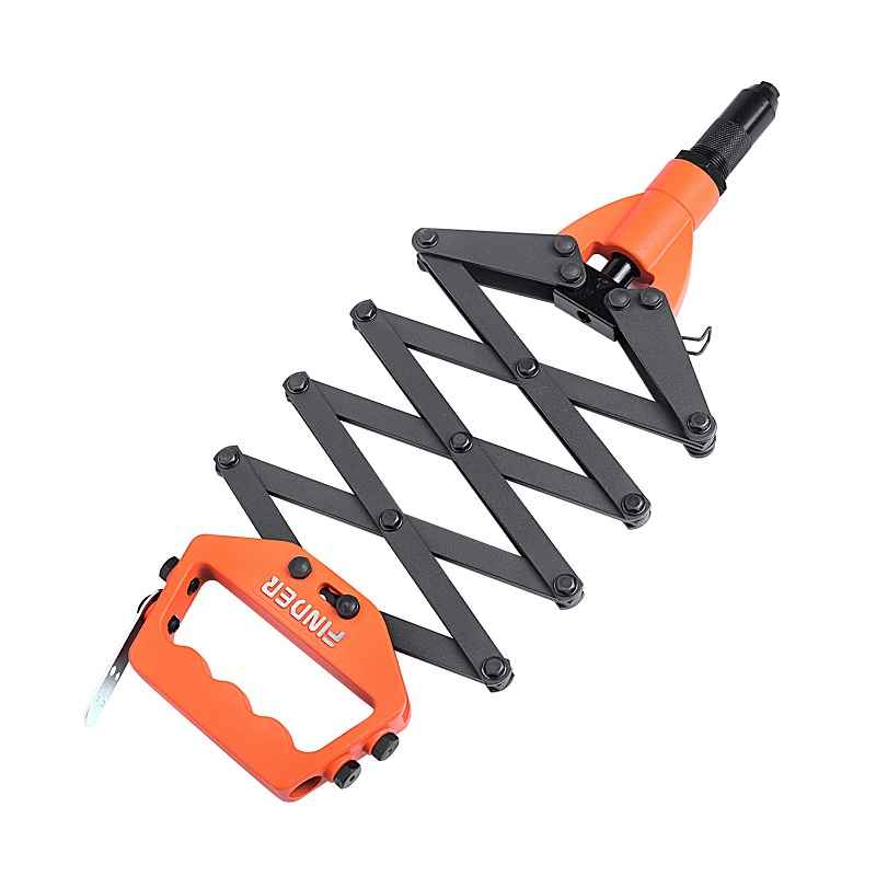 Rivettatrice pieghevole in alluminio 600mm con finitura opaca e punte intercambiabili 2.4/3.2/4.0/4.8mm. Costruzione solida con durezza 55-63HRC (morsi), 40-50HRC (punte) e 38-48HRC (manico) per connessioni affidabili in e