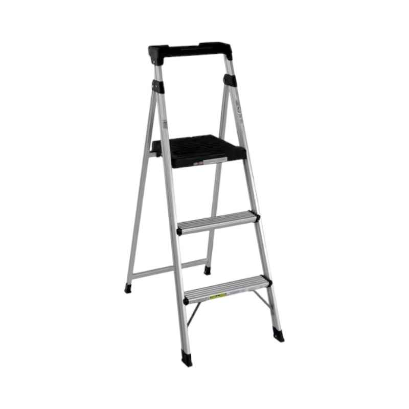 Scala pieghevole in alluminio a 3 gradini, robusta e leggera, ideale per lavori in casa e all’aperto. Dimensioni 130x80x45cm e facile da riporre.