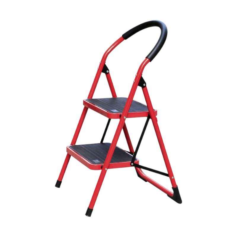 Scala pieghevole a 2 gradini, con struttura robusta in ferro, e facile da riporre.