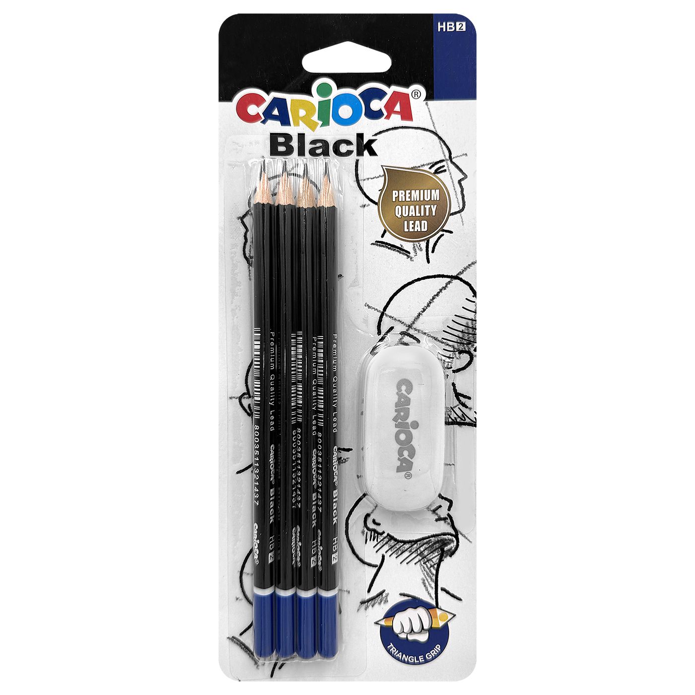Set da 4 matite e 1 gomma Carioca, ideale per i compiti scolastici e le annotazioni quotidiane. Set pratico ed economico per uso domestico o scolastico.