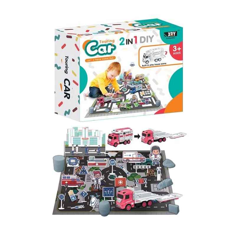 Set tematico di strada cittadina con molti accessori, adatto per bambini da 3 anni in su. Soddisfa tutti gli standard di sicurezza e viene consegnato in una confezione compatta di 17x21x7 cm.