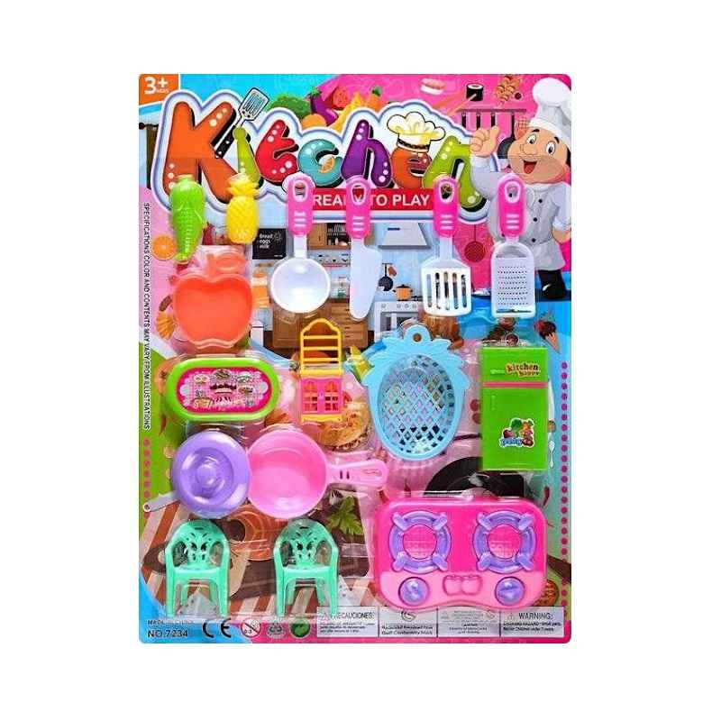 Set da cucina mini con tutti gli accessori necessari per un gioco di ruolo realistico.