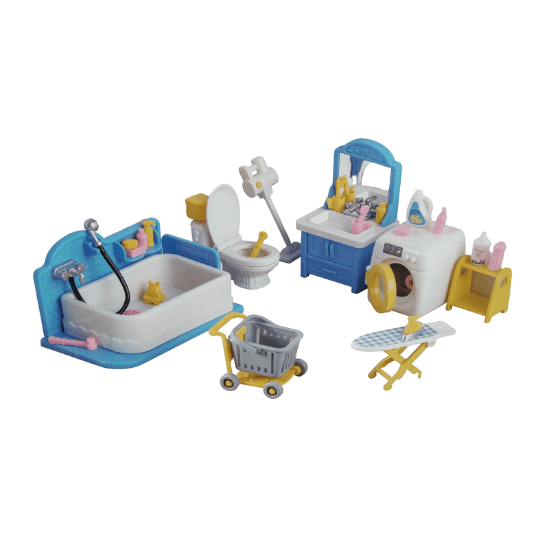 Gioco Bagno con set completo di mobili e molti accessori, per creare un meraviglioso bagno per la tua bambola, proprio come vorresti!