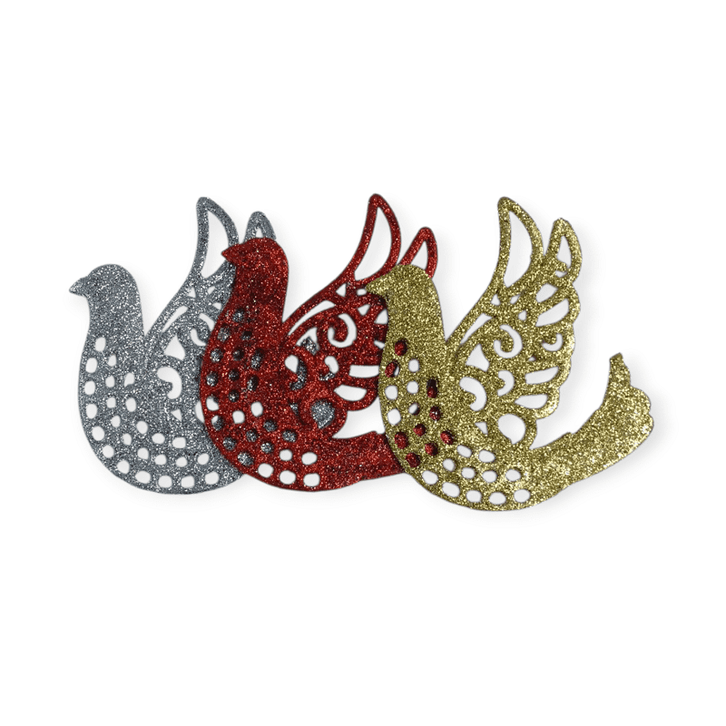 Decorazioni natalizie in un design bellissimo, con glitter dorati scintillanti e dettagli particolari.