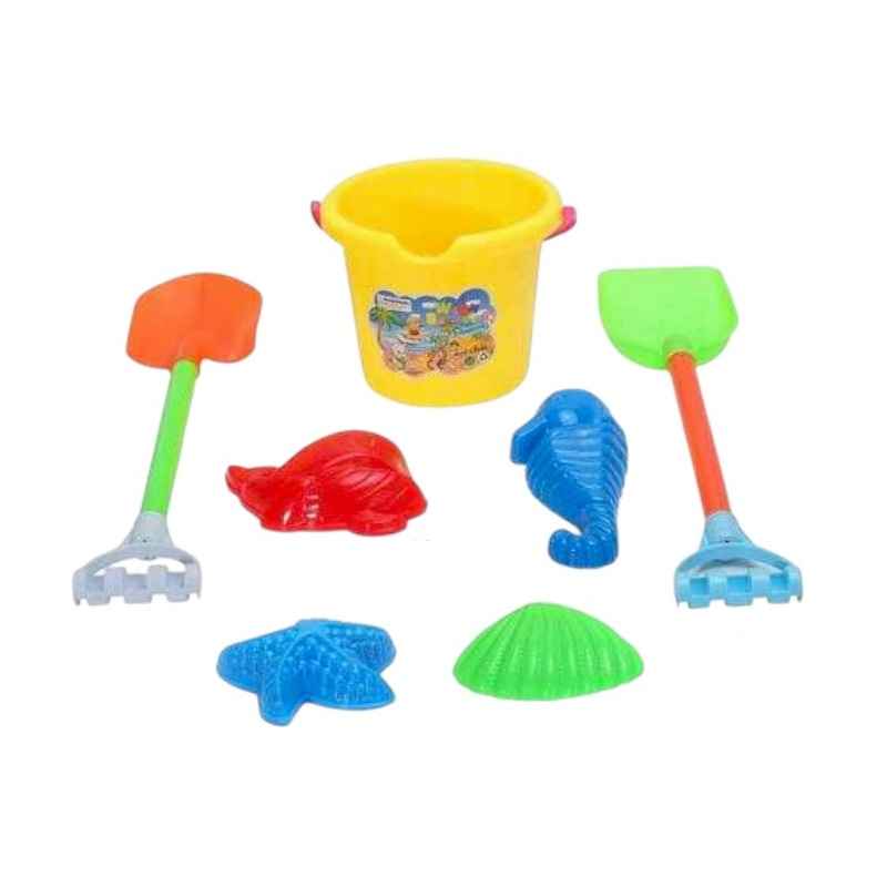 Set completo di giochi da spiaggia per bambini da 3 anni in su con secchiello (18x15cm), paletta (45x10cm) e attrezzi per giochi creativi nella sabbia. Conforme agli standard di sicurezza.