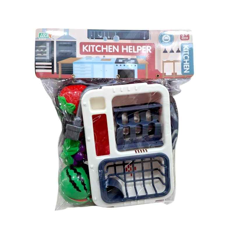 Set lavello da cucina per bambini con stoviglie e alimenti in plastica colorata, adatto per età 3+. Include accessori e rispetta gli standard di sicurezza.