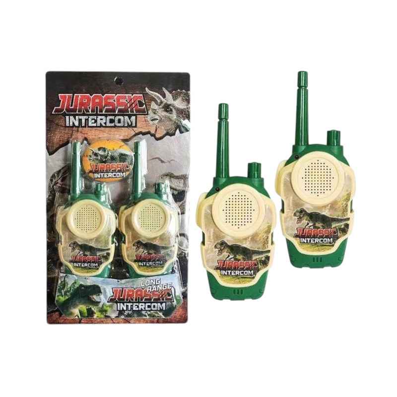 Set walkie-talkie per bambini da 2 pezzi con design realistico per un gioco di ruolo divertente. Adatto per età 3+, conforme agli standard di sicurezza, confezione compatta 32x18x4cm.