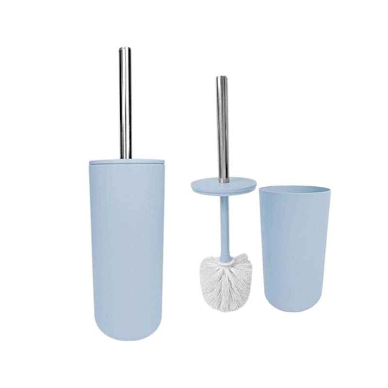 Pratico scopino per WC in plastica resistente con setole fitte e manico ergonomico per una pulizia facile ed efficace. Colore moderno azzurro chiaro che si adatta a ogni bagno.