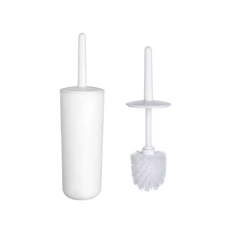 Spazzolino per WC in plastica resistente con setole fitte per una pulizia efficace. Design moderno e compatto di colore bianco, facile da usare e da pulire.
