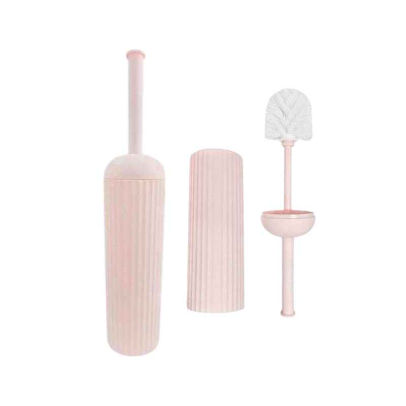 Pratico scopino per WC in rosa chiaro realizzato in plastica resistente con setole fitte — offre una pulizia efficace e un aspetto elegante al bagno, facile da mantenere.