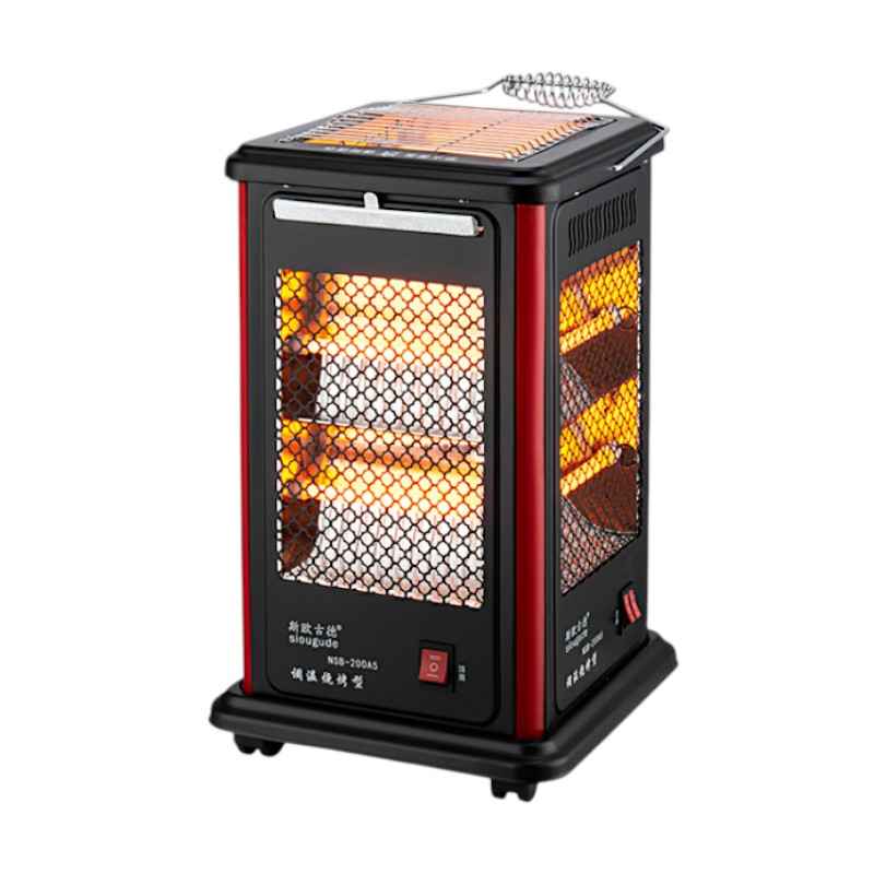 Stufa elettrica al quarzo, che offre un riscaldamento immediato ed efficace, con livelli di calore regolabili fino a 2000W e possibilità di spostamento sicuro e facile.