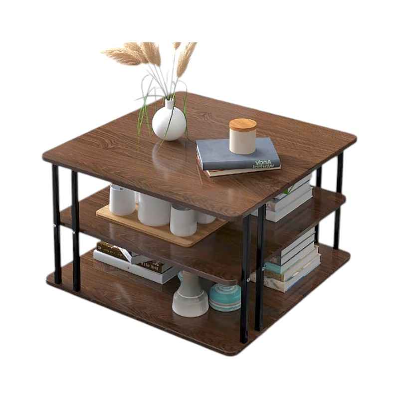 Tavolino da salotto a tre piani con struttura metallica e piano in MDF, dimensioni 60x60x43cm. Design moderno che offre praticità ed eleganza al soggiorno.