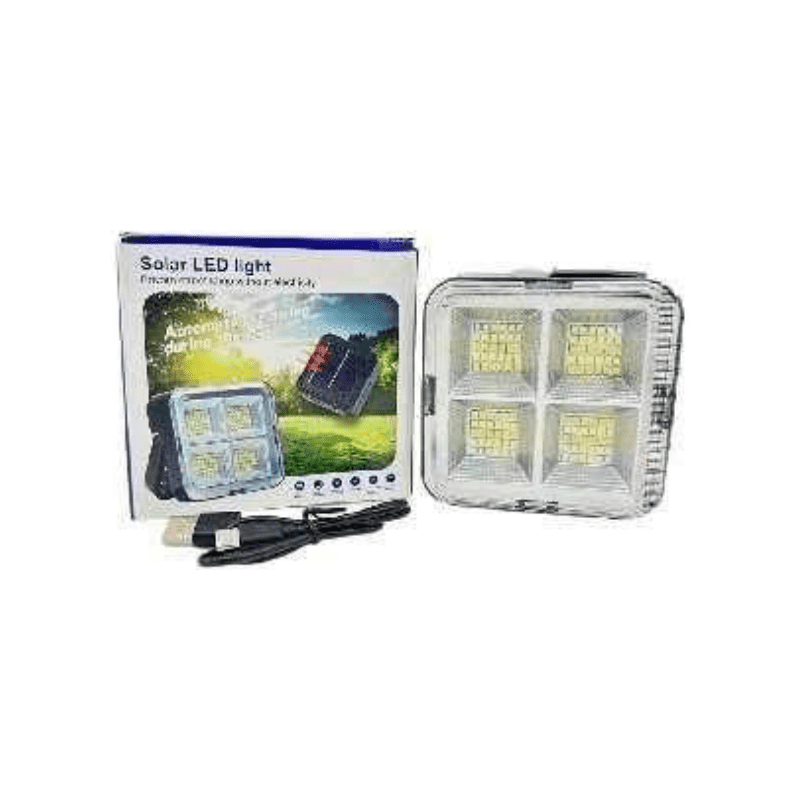 Proiettore da lavoro LED ricaricabile con pannello solare che offre autonomia extra della batteria e con supporto pieghevole. Caratteristiche: 3 modalità, Spia di carica, Tempo di ricarica solare: 8 ore in pieno sole, Autonomia: 4-8 ore a seconda dell’intensità, Impermeabilità: IP65, Temperatura-colore della luce: Bianco freddo 6500K.