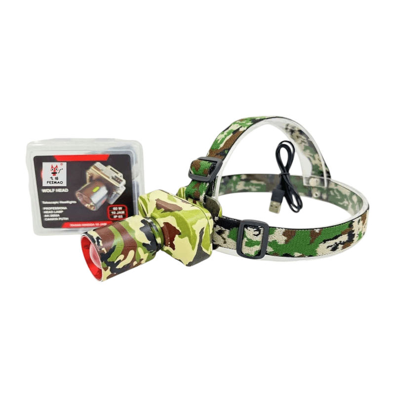 Faro frontale LED ricaricabile, con illuminazione potente 6000K e lunga autonomia della batteria, adatto per attività, hobby e uso professionale.