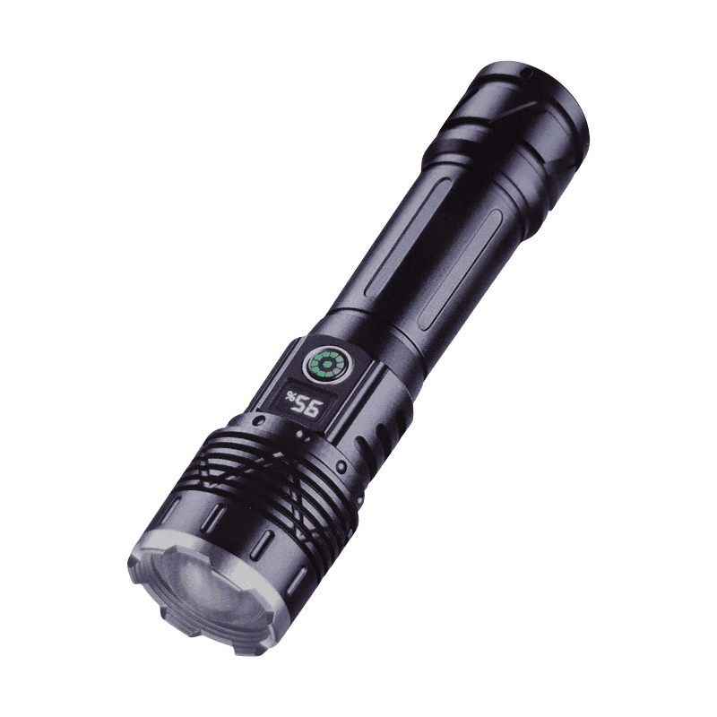 Torcia portatile ricaricabile con illuminazione potente e lunga autonomia della batteria, particolarmente resistente, con design ergonomico, ideale per ogni tipo di attività all’aperto e sport.