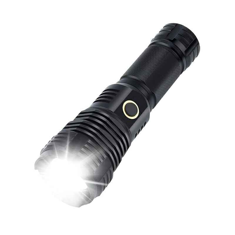 Torcia LED portatile ricaricabile con illuminazione potente e lunga autonomia della batteria.