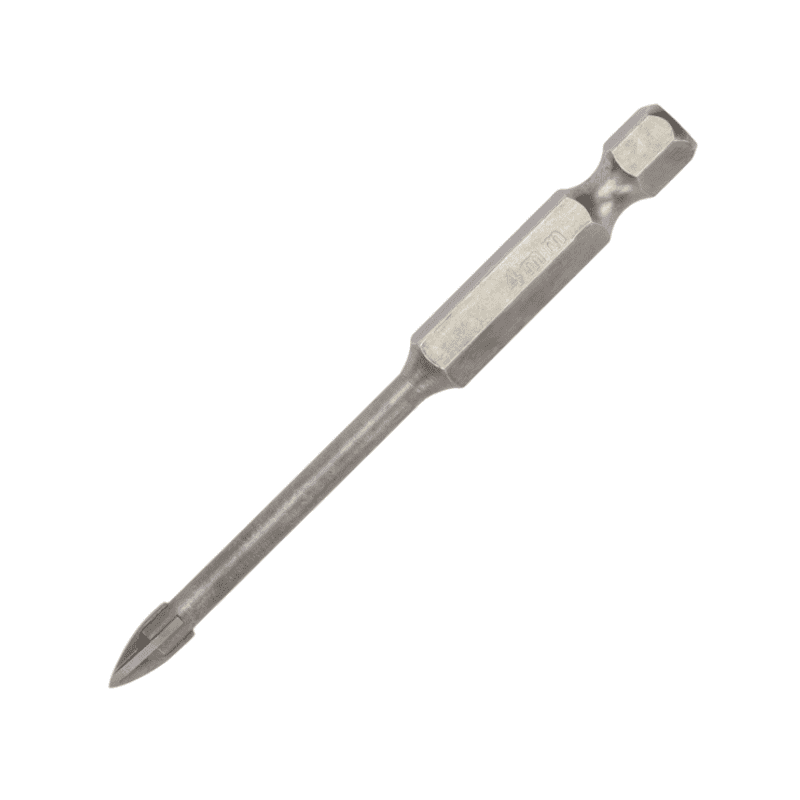 Trapano a quattro taglienti 4mm per la perforazione di vetro e piastrelle, realizzato in acciaio al carbonio #45 per un taglio pulito e preciso. Adatto per trapani manuali ed elettrici.