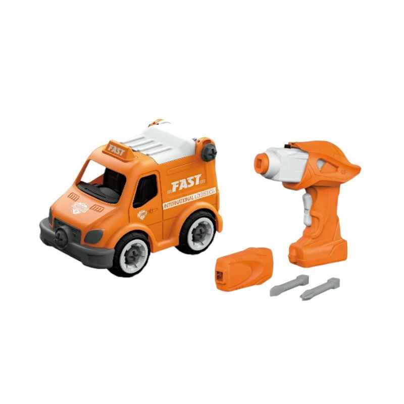Gioco educativo con veicolo cittadino, con movimento e possibilità di montaggio-smontaggio per un gioco creativo che esercita la motricità fine.