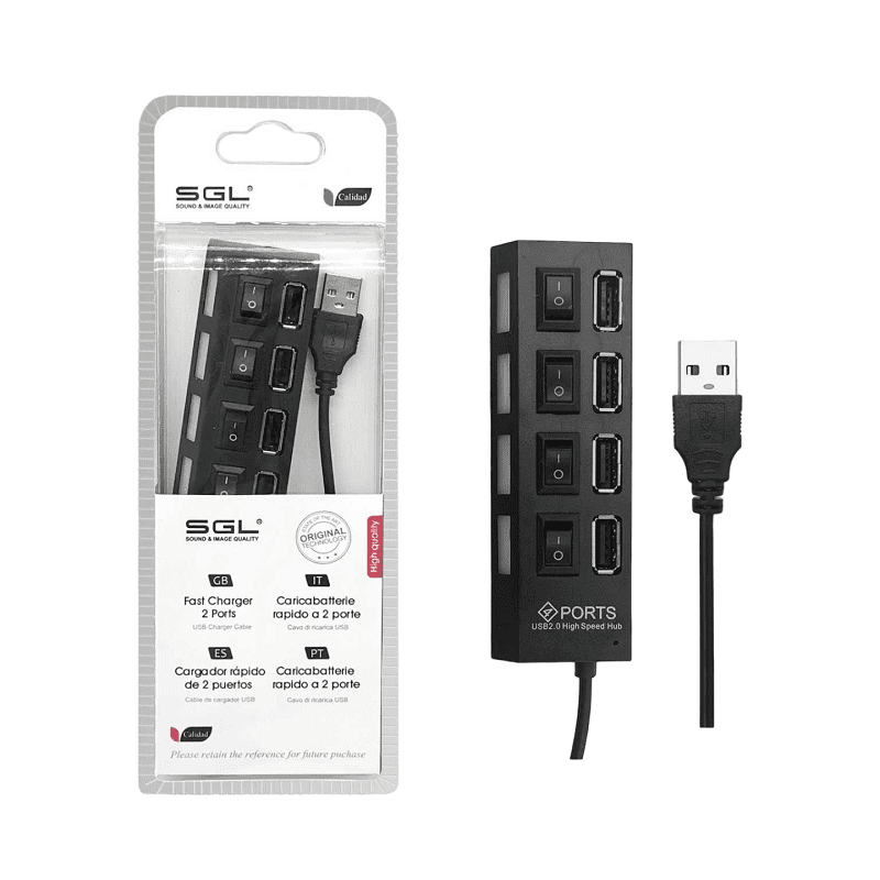 Αντάπτορας USB Hub με 4 θύρες και διακόπτες – 404P. Μήκος: 45cm. Χρώμα: Μαύρο.