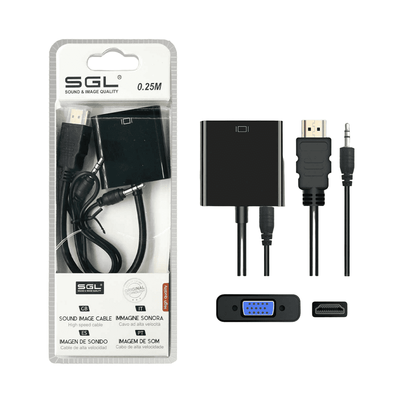 Αντάπτορας VGA σε HDMI & Jack 3.5mm – TP1A. Μήκος: 25cm. Χρώμα: Μαύρο.