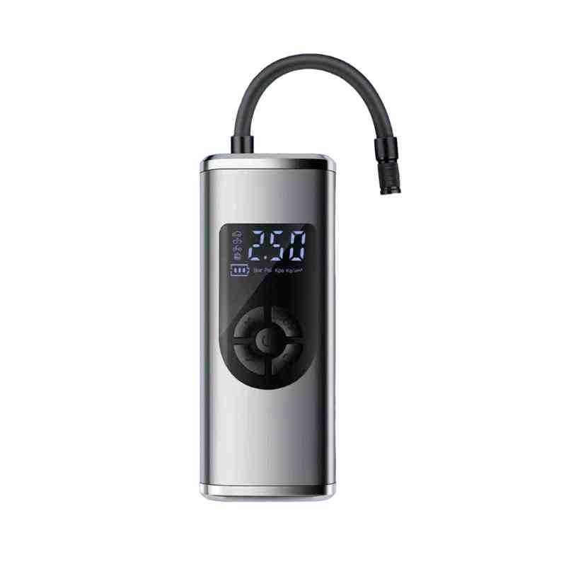 Ασύρματο κομπρεσέρ αέρα, φορητό με ψηφιακή LCD οθόνη. Επαναφορτιζόμενη μπαταρία ιόντων λιθίου Με τάση DC12V 150 PSI Χαρακτηριστικά: Διαθέτει μεγάλη μπαταρία χωρητικότητας 2200 mAh και μπορεί επίσης να τροφοδοτηθεί τόσο από την επαναφορτιζόμενη μπαταρία Li-ion όσο και από τον προσαρμογέα αναπτήρα 12V, διπλής χρήσης και χωρίς ταλαιπωρία. Αυτόματη απενεργοποίηση. Απλώς ρυθμίστε την επιθυμητή πίεση και στη συνέχεια ενεργοποιήστε το, θα σβήσει αυτόματα φτάσει στην κατάλληλη πίεση. Εξαιρετικά εύκολο στη χρήση! Διαθέτει ισχύ 150 W και παρέχει αέρα με εντυπωσιακό ρυθμό 35 L/min, πολύ πιο ισχυρή και γρήγορη από την παραδοσιακή αντλία! Εξαιρετική απόδοση. Μεγάλη αντοχή. Επίσης είναι εξοπλισμένο με 3 αντάπτορες ακροφυσίων για στρώματα/αεροσκάφος/παιχνίδια/αθλητικές μπάλες/φουσκωτά.