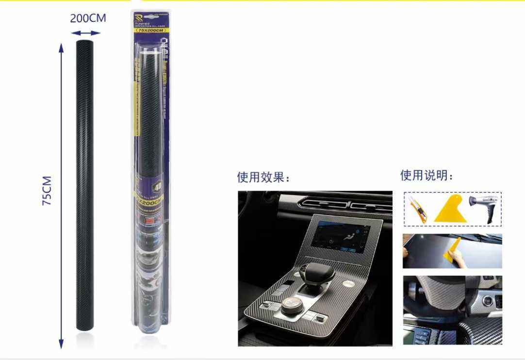 Αυτοκόλλητη διακοσμητική μεμβράνη αυτοκινήτου, ανάγλυφη-Carbon 4D, κατάλληλη για εσωτερική και εξωτερική χρήση. Διαστάσεις: 75*200cm.