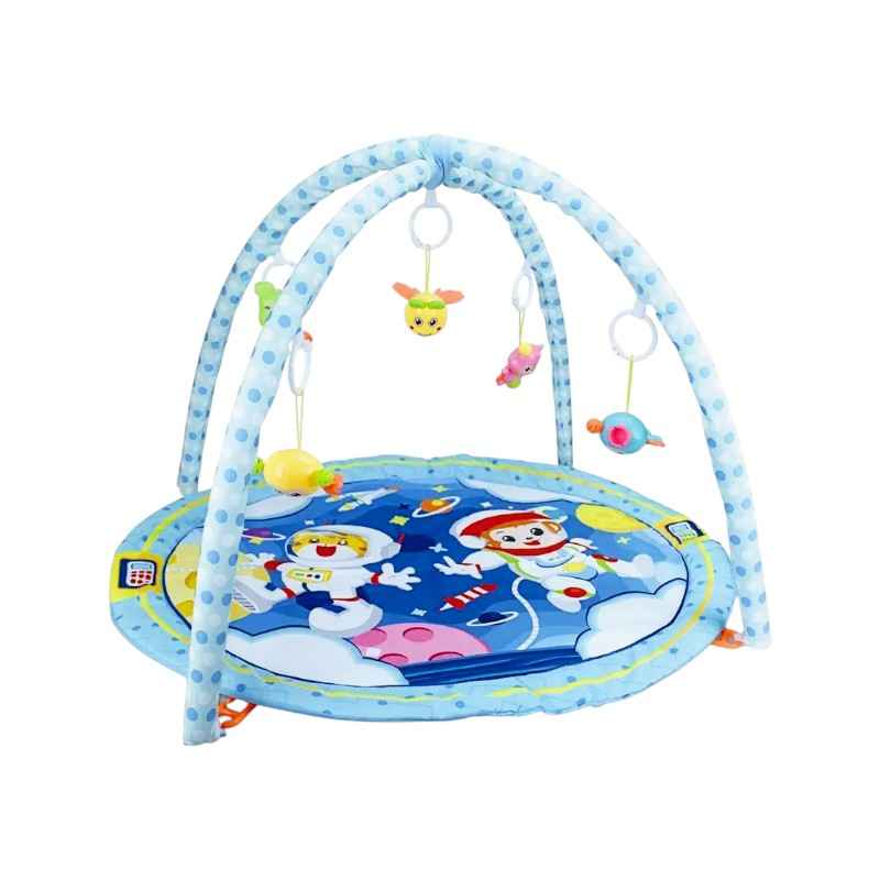 Βρεφικό γυμναστήριο με κρεμαστά παιχνίδια, με μαλακό στρωματάκι με σχέδια από απαλό υποαλλεργικό ύφασμα.