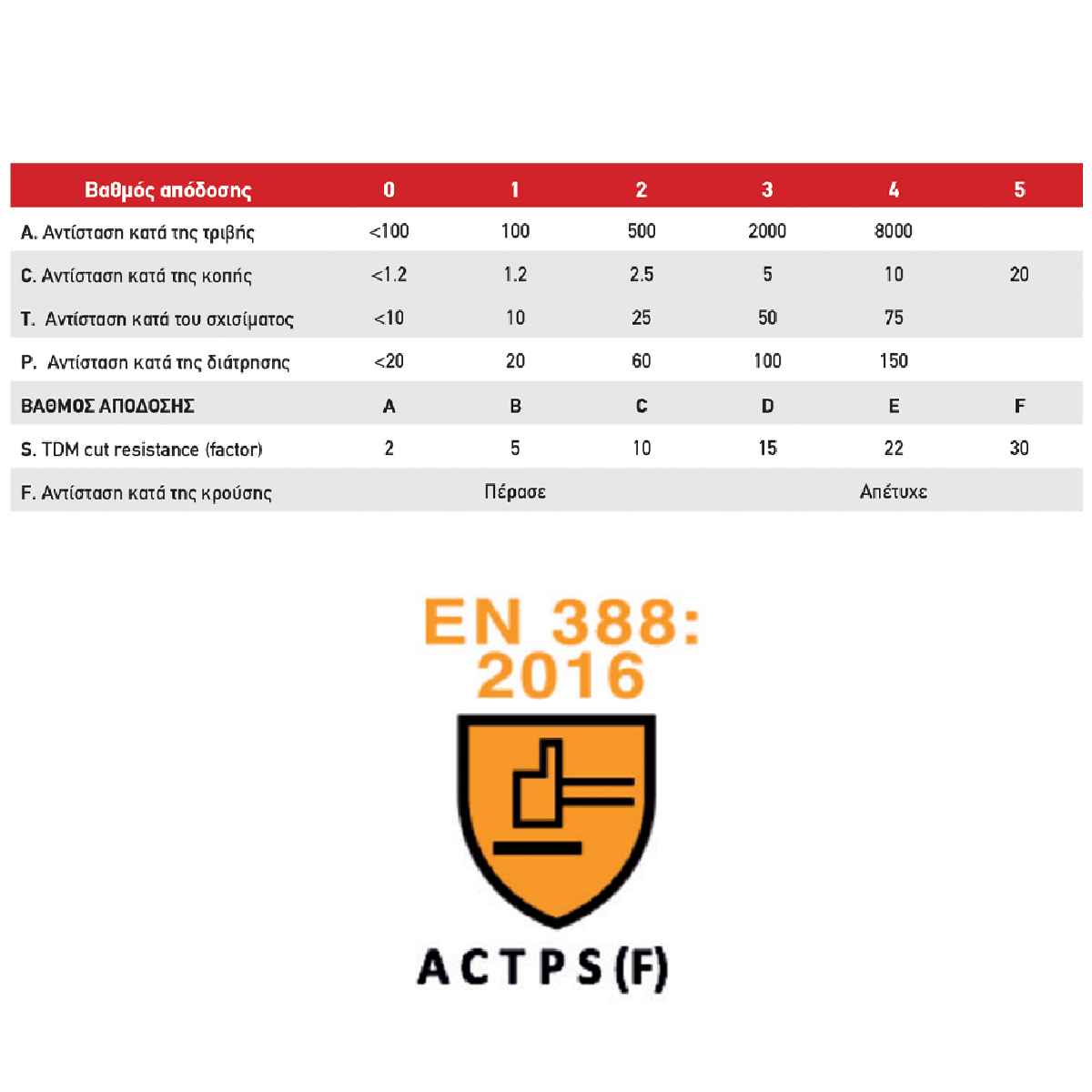 Θερμική Προστασία: Συμμόρφωση με τους κανονισμούς EN407 και EN12477:2001+A1:2005, τύπος Α