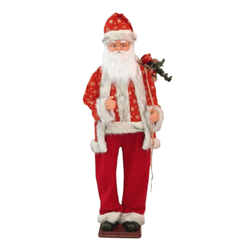 Μεγάλη διακοσμητική φιγούρα Άγιος Βασίλης με μουσική και χορευτική κίνηση, ύψους 120cm, με ιδιαίτερα ρεαλιστικό σχεδιασμό και εντυπωσιακές λεπτομέρειες. Ιδανική για τη διακόσμηση του σαλονιού, του δωματίου ή και του μπαλκονιού σας. Ελαφριά κατασκευή για εύκολη μεταφορά και στιβαρή σταθερή βάση.