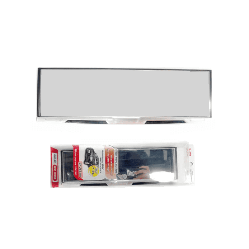 Εσωτερικός καθρέπτης αυτοκινήτου Total view, ελαφρώς κυρτός ώστε να αυξάνει το οπτικό σας πεδίο. Διαθέτει σταθερή βάση τοποθέτησης πάνω στον υπάρχοντα καθρέπτη σας. Universal σχεδιασμός που ταιριάζει σε όλα τα αυτοκίνητα. Διαστάσεις: 27x8cm.