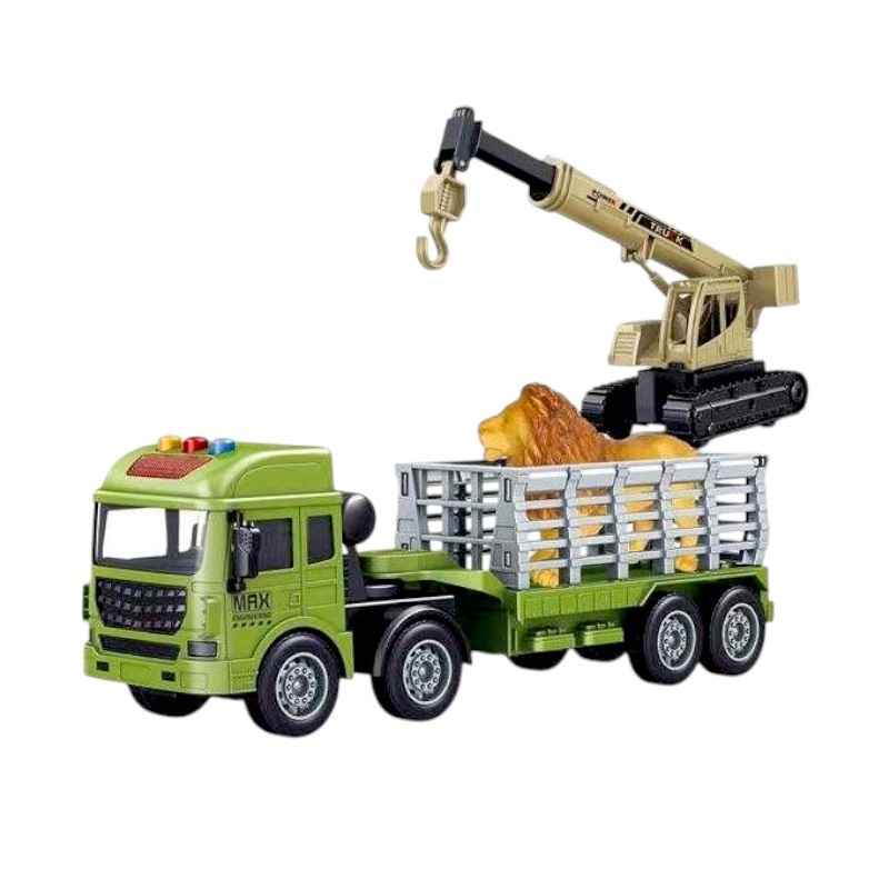 Παιδικό παιχνίδι όχημα μεταφοράς ζώων, με φιγούρα λιονταριού και έξτρα όχημα γερανό, σε υπέροχο ρεαλιστικό σχεδιασμό, ιδιαίτερες λεπτομέρειες, και εξαιρετικά ανθεκτική κατασκευή.