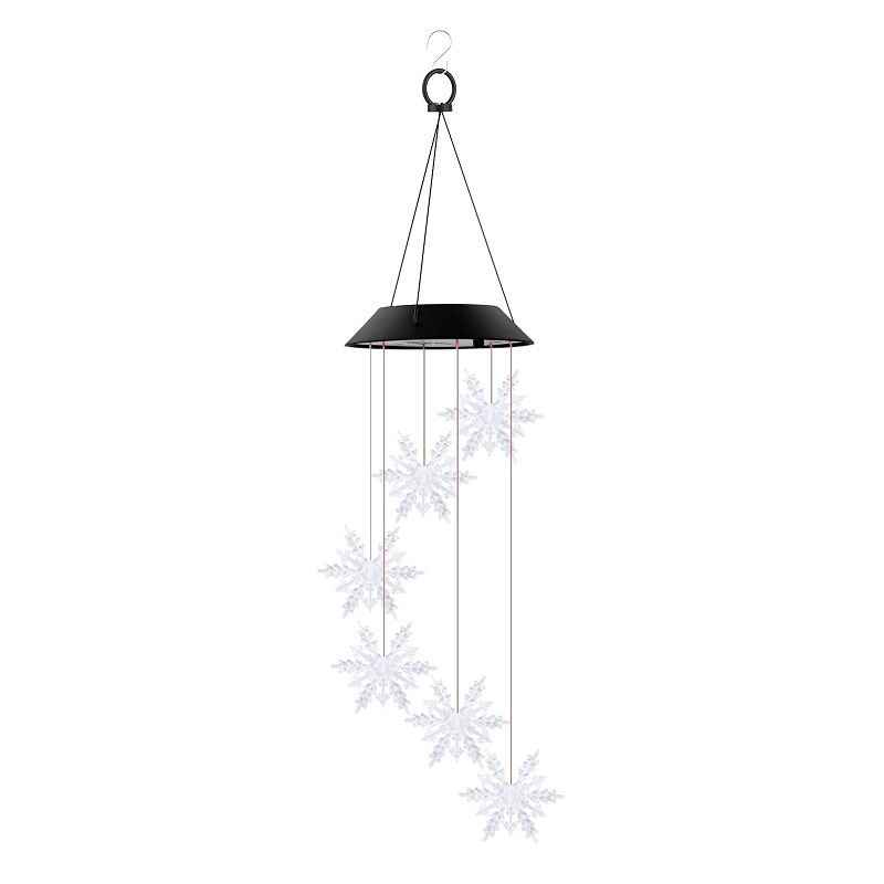 Ηλιακό κρεμαστό χριστουγεννιάτικο στολίδι-χιονονιφάδα με πολύχρωμα LED RGB, ενσωματωμένο ηλιακό πάνελ και μπαταρία 600mAh — αυτονομία έως 6 ώρες, εύκολη τοποθέτηση με γάντζο.