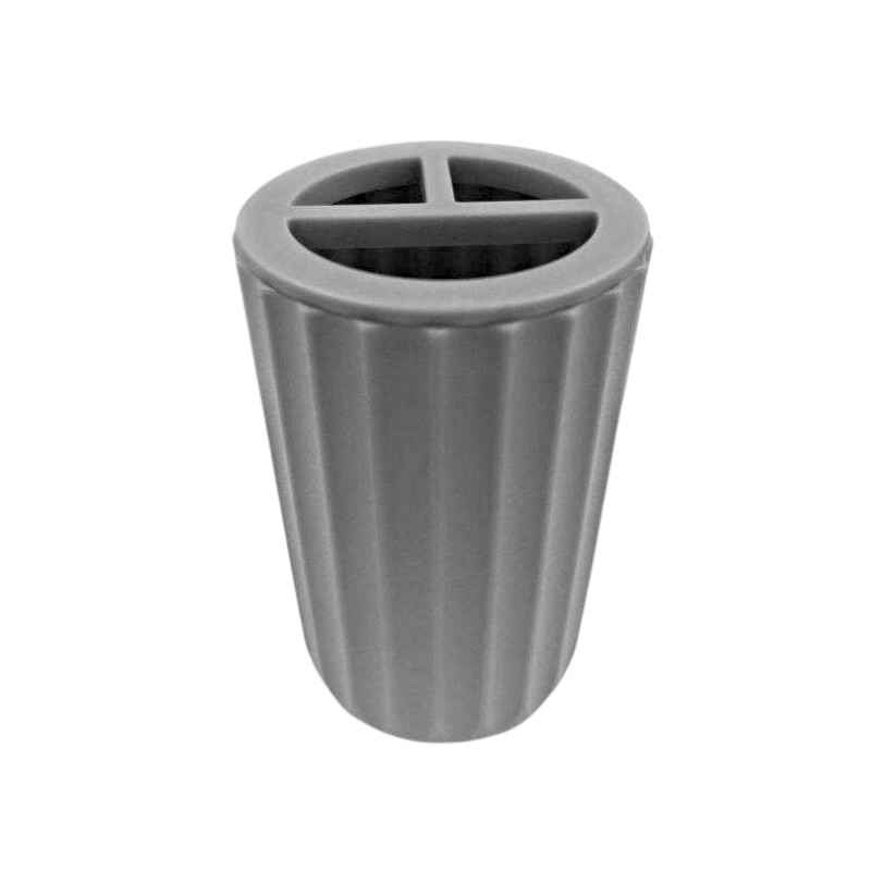 Σετ με θήκες οδοντόβουρτσας σε ποτήρι, από υψηλής ανθεκτικότητας πλαστικό υλικό, με ανεξίτηλους χρωματισμούς, σε μοντέρνο και πρακτικό σχεδιασμό που μπορεί να ταιριάξει σε κάθε στυλ μπάνιου.