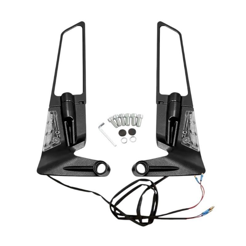 Καθρέπτες μοτοσυκλέτας περιστρεφόμενοι, με ενσωματωμένα φλας LED και πλήρες σετ συνέργων τοποθέτησης.