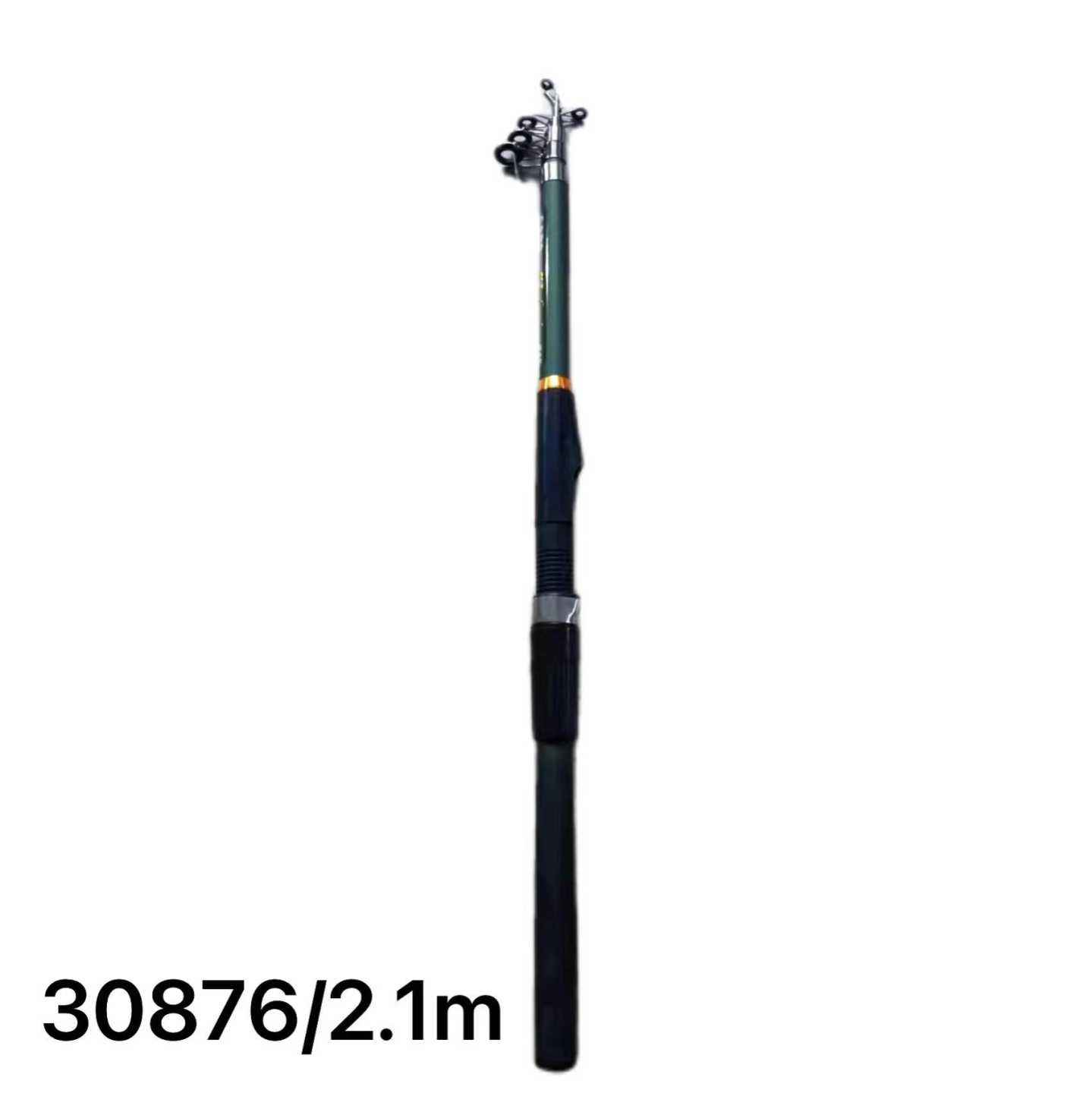 Τηλεσκοπικό καλάμι ψαρέματος 2.1m από ενισχυμένες ίνες με εργονομική λαβή και οδηγούς — ελαφρύ, φορητό και ανθεκτικό για παράκτια ή γλυκού νερού χρήση.