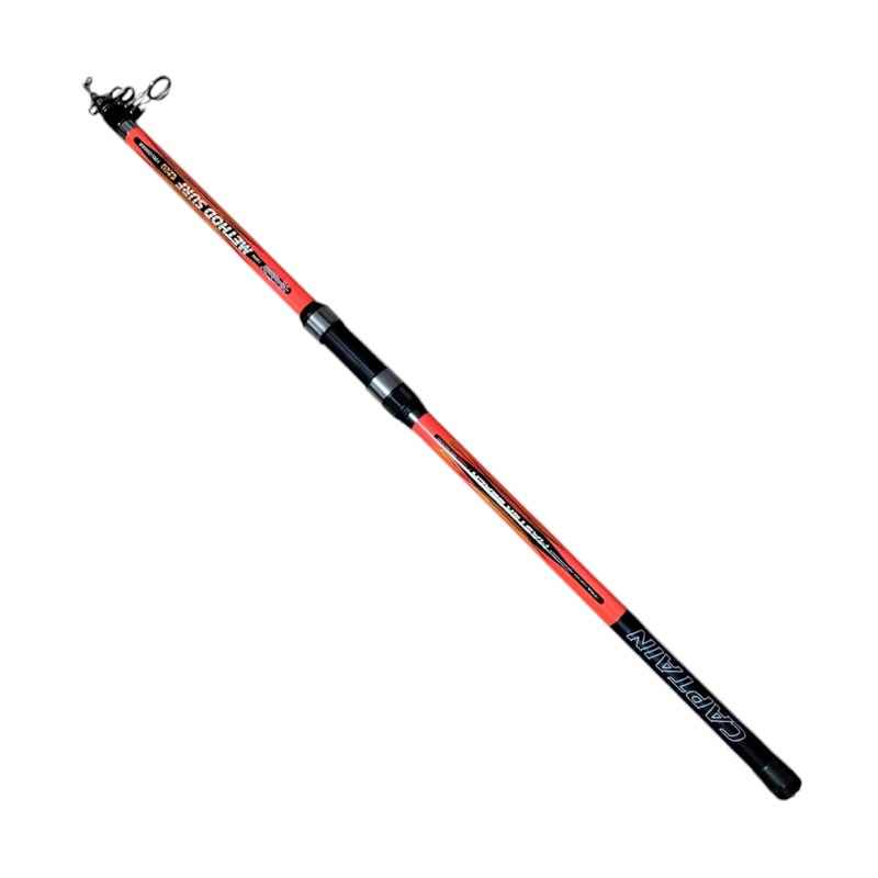 Καλάμι ψαρέματος, τηλεσκοπικό, κατασκευασμένο από ενισχυμένες ίνες υψηλής αντοχής, οπλισμένο με οδηγούς και εργονομική λαβή υψηλής ποιότητας.