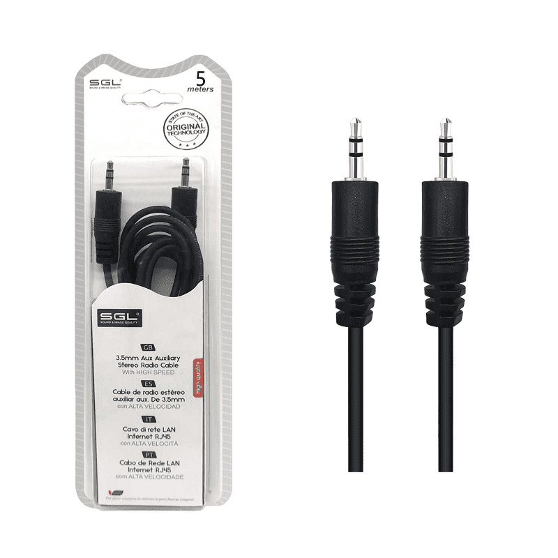 Καλώδιο ήχου Jack 3.5mm – 412 – Male/Male, με ενισχυμένο κάλυμμα προστασίας. Μήκος: 5m. Χρώμα: Μαύρο.