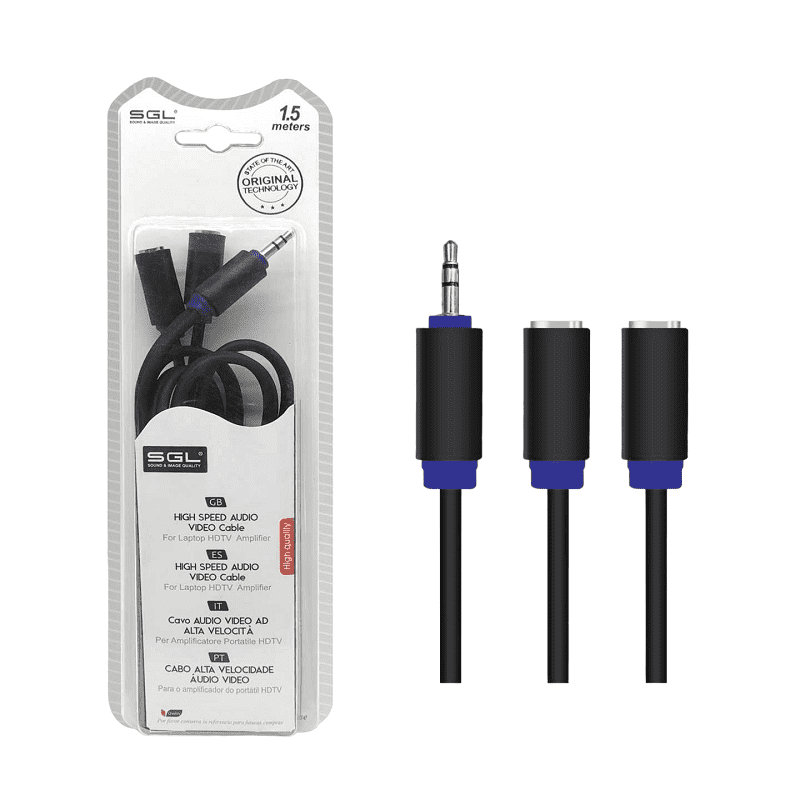 Καλώδιο ήχου Jack 3.5mm – A1528 – Male σε 2 x Female, με ενισχυμένο κάλυμμα προστασίας. Μήκος: 1.5m. Χρώμα: Μαύρο.