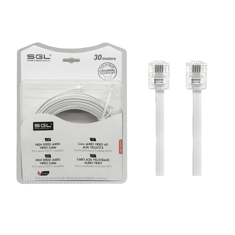 Καλώδιο γραμμής τηλεφώνου πλακέ – 6P4C. Μήκος: 30m. Χρώμα: Λευκό.