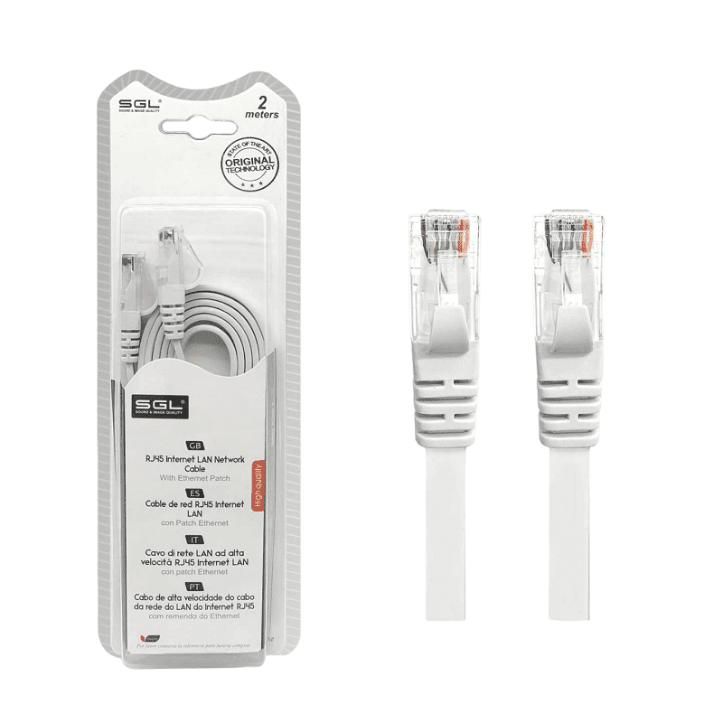 Καλώδιο δικτύου Ethernet A8P8C, πλακέ. Μήκος: 2m. Χρώμα: Λευκό.