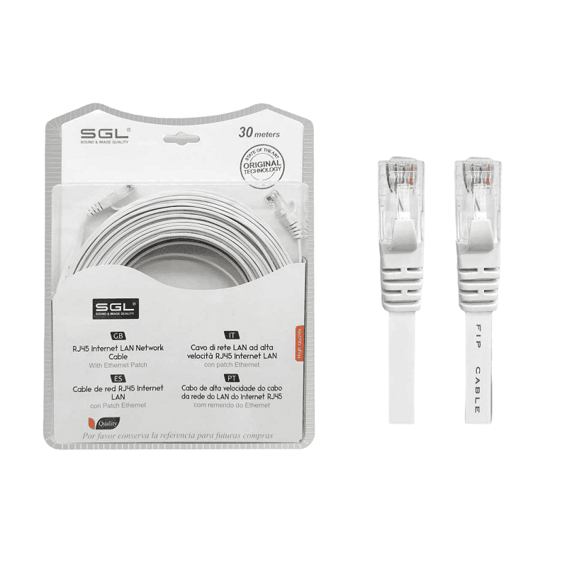Καλώδιο δικτύου Ethernet A8P8C, πλακέ. Μήκος: 30m. Χρώμα: Λευκό.