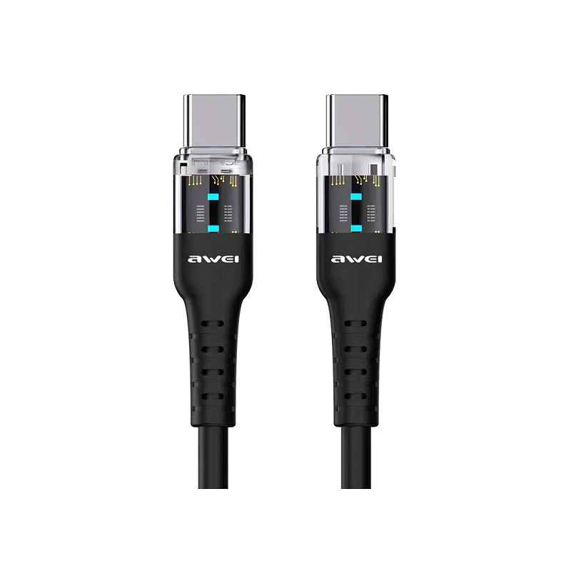 Καλώδιο μεταφοράς δεδομένων USB Type-C σε Type-C της AWEI, με πρωτοποριακό διαφανή σχεδιασμό και ταχύτατη απόδοση.