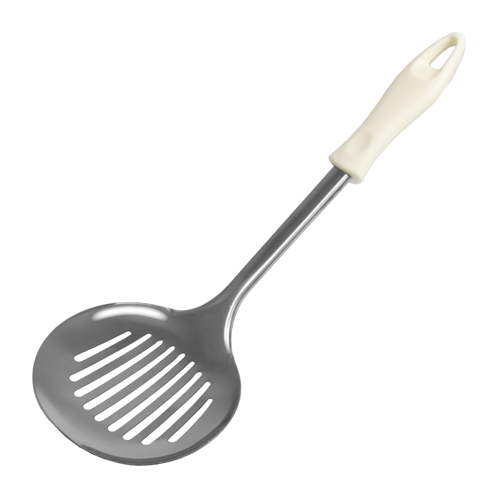Η τρυπητή κεφαλή των 12 εκ διαθέτει κάθετες σχισμές σχεδιασμένες για να διευκολύνουν το άμεσο στραγγίξιμο των υγρών, καθιστώντας την ιδανική για νιόκι, κοντά ζυμαρικά, λαχανικά, τηγανητά ή ευαίσθητα τρόφιμα που απαιτούν γρήγορες και ακριβείς κινήσεις. Η εργονομική λαβή από πολυπροπυλένιο μήκους 33,9 εκ εξασφαλίζει σταθερό και άνετο κράτημα, προστατεύοντας το χέρι από πιτσιλιές και θερμότητα και προσφέροντας τέλειο έλεγχο κατά τη χρήση.
