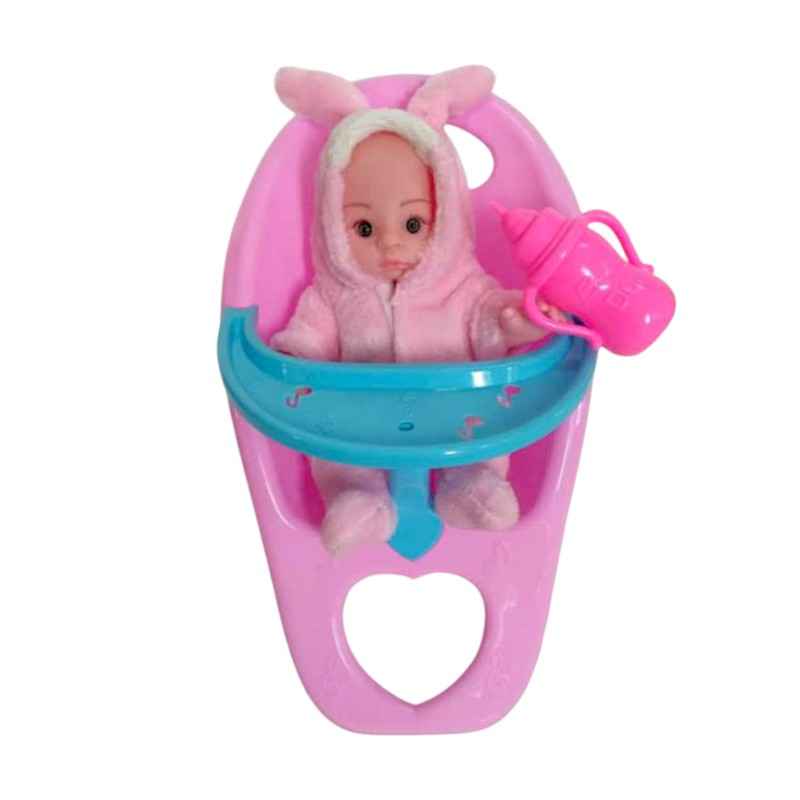 Κούκλα μωρό μίνι με σετ καρεκλάκι φαγητού και μπιμπερό για να το φροντίσεις σαν ένα πραγματικό μωράκι!